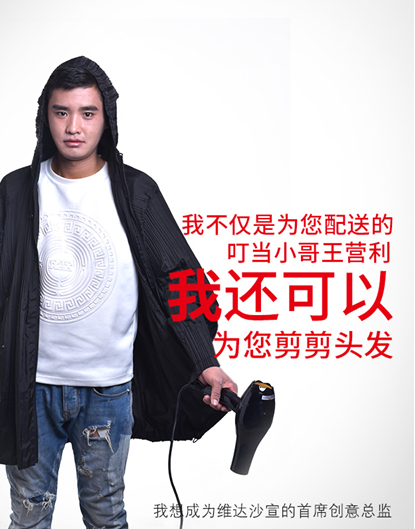 王营利学过5年理发,他负责王府井附近的胡同,里面有很多独住老人他希望送单的同时,可以继续为他们剪一次头发。他的梦想是成为维达沙宣的首席创意总监。