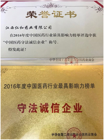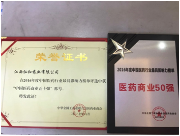 业界的良好口碑是团队奋斗的硕果,更是公司竞争力的综合体现。近年来,仁和药业积极落实国家战略计划,高度重视行业合作。奖项的获得,是行业及权威机构对“仁和药业”企业的认可,更是“仁和药业”今后不断发展的动力。今后,仁和药业将再接再厉,不忘初心,不断打造更多更好的品牌产品,为广大消费者的健康服务。